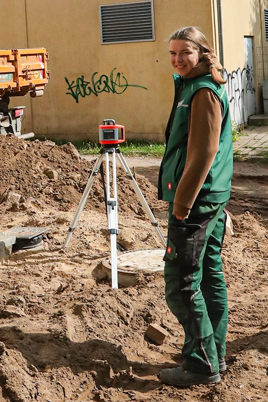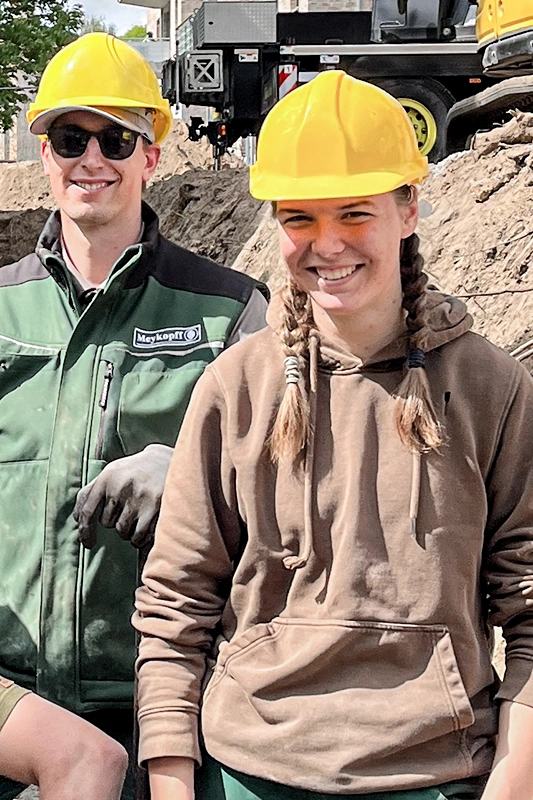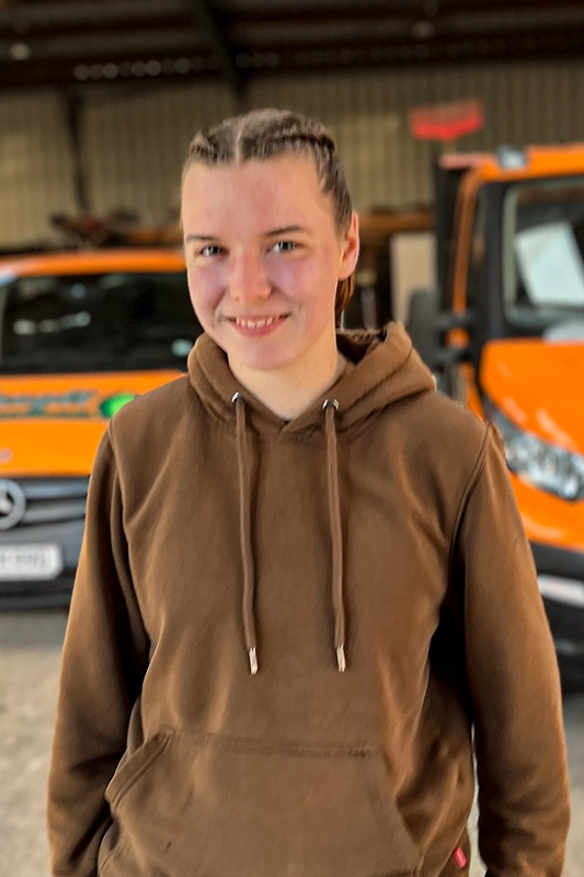 Ich habe an der Lübecker Thomas-Mann-Schule meine Fachhochschulreife im G8 Format erworben. Während meines Pflichtpraktikums in der elften Klasse im Januar 2023 bei Meykopff habe ich den Garten- und Landschaftsbau kennengelernt. Das war damals gar nicht so einfach, denn ich musste das Unternehmen fast überreden, mich als Praktikantin anzunehmen. Im Januar gibt es in dieser Branche nur wenige Arbeiten – vor allem Baum- und Strauchschnitt in der Grünpflege – und außer dem Winterdienst sowie dem Schneeräumen kaum etwas zu tun, bei dem ich den Beruf hätte kennenlernen können. Der Boden ist häufig gefroren, was Erdarbeiten fast unmöglich macht. Ich habe aber nicht lockergelassen und durfte schließlich eine Woche im Büro und eine Woche auf den Baustellen sowie in der Grünpflege mitarbeiten.