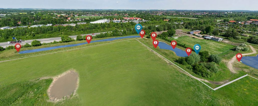 Regenwassermanagement im großen Stil. Drohnenflug über Grapengießerstraße an der A1. Entdecken Sie ein Projekt mit gigantischen Dimensionen.